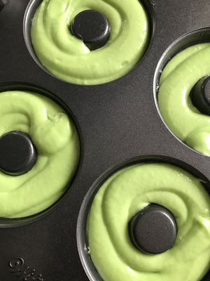 Jetzt fehlt nur noch das Mehlgemisch und die Milch! Dies könnt ihr abwechselnd unterheben! Nur noch die grüne lebensmittelfarbe dazu geben bis es euch gefällt! Ich finde zu grün wird immer eher ungern gegessen😅🤭