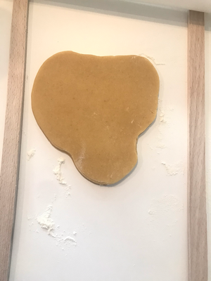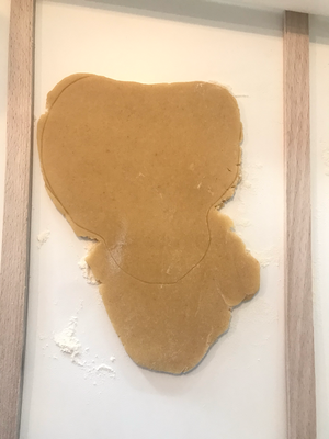 Zur Hilfe hatte ich Ausrollhölzer, um den Keks gleichmĂ€Ăig hoch zu machen.Â