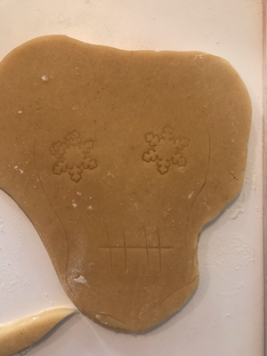 Habt ihr dies auch ausgerollt, legt ihr euren Keks darauf und schneidet von Hand mit einem feinen Messer oder einem Mini Fondant Pizzaroller drum herum. Nun zeichnet ihr mit einem Zahnstocher die Kontur des SchĂ€dels auf den Fondant und zieht es mit dem schwarzen Lebensmittelstift nach. Und nun könnt ihr beginnen mit der Gesichtsdekoration đ đ€Ł