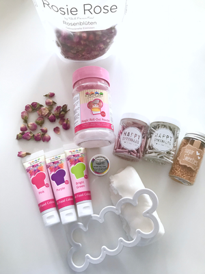 Die Rosie Rose habe ich nur in den Fondant gedreht und die Streusel mir Lebensmittelechtem Kleber aufgeklebt. Den Mund habe ich auch mit einem Zahnstocher geschnitten und mit dem Bronzepulver zart bepinselt. FĂŒr die Schattierung habe ich das schwarze Pulver verwendet.Â