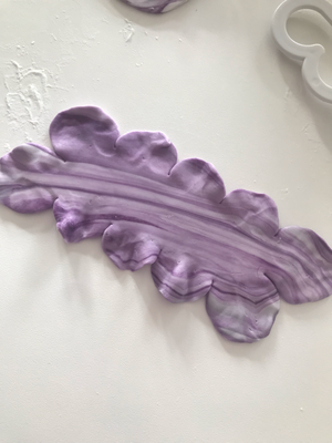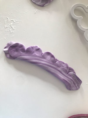 FĂŒr die Blumen verwende ich einen Ausstecher. MĂŒsst ihr aber nicht. Ihr könnt auch hier einfach mit einem Messer wellenförmige Teile schneiden, wie ihr sie auf dem Bild seht. Da die RĂ€nder eh noch ausgedĂŒnnt werden mĂŒssen, spielt es keine rolle, wie perfekt sie sind.Â