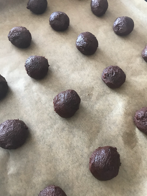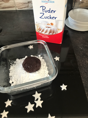 Nach den 30min den Teig rausholen und Walnussgroße Kugeln formen und diese nochmal für 30min kaltstellen, ihr wisst dann warum 😅