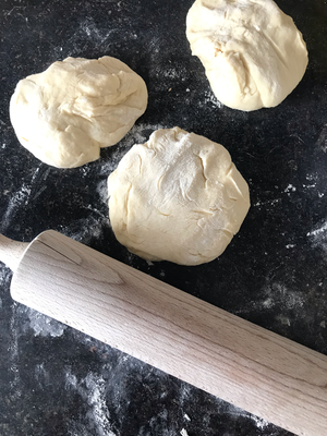 Nun den Teig in 3-4 unterschiedlich große Teile schneiden (abwiegen)