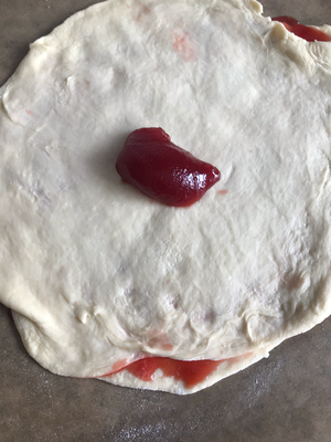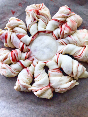 Nun also erst den schwersten Teil auf einer bemehlten Fläche ausrollen.