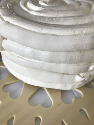 Eiweiß kurz aufschlagen, Puderzucker dazu geben und schaumig schlagen.