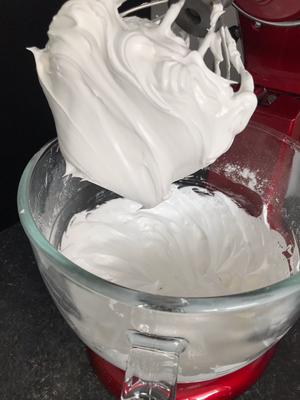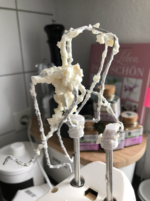 Und so lange weiter schlagen bis der Zucker sich gelöst hat und eine Spitze stehen bleibt siehe Bild!