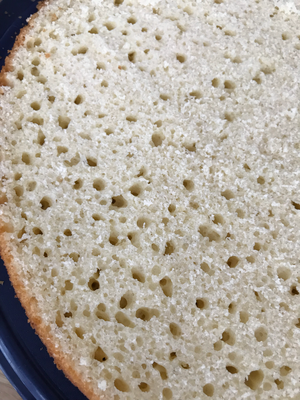 Anschließend Kuchen vollständig auskühlen lassen und erst dann 2 Böden mit á 2cm aus dem Kuchen schneiden!